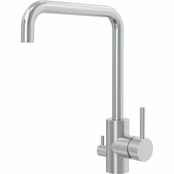 Kjøkkenbatteri i tidløs design. Med høy tut er det enkelt å fylle gryter og karafler.