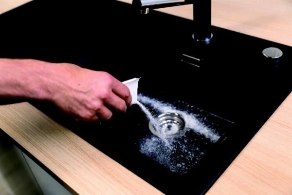 Blanco Activ pulver fjerner kraftige kalkavleiringer og eventuelle misfarginer fra juice, te eller kaffe på kjøkkenvasker i silgranit kompositt.