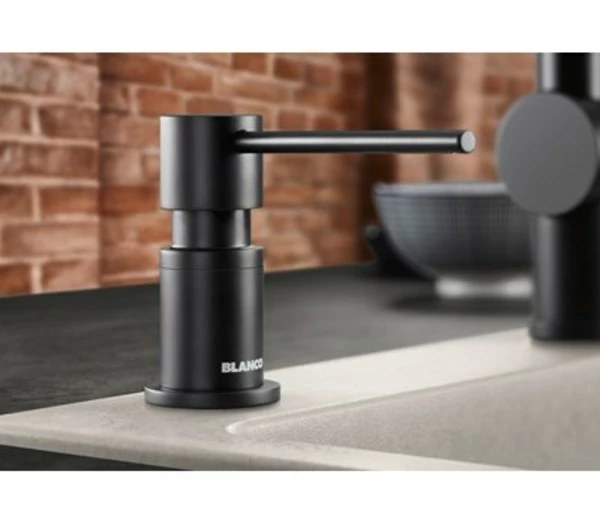 Blanco Lato såpedispenser til montering i et ekstra kranhull eller i bordpladen. Kan brukes til både oppvaskmiddel eller håndsåpe. Du kan enkelt påfylle såpe oppefra.