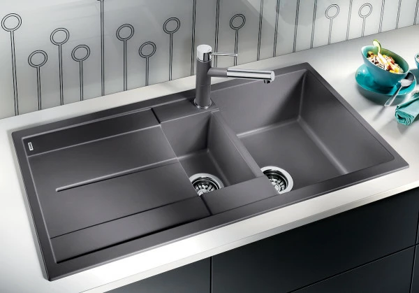 Med vasken som kjøkkenets naturlige sentrum har Blanco i sine utforminger av kjøkkenvasker sørget for å skape et perfekt forhold mellom design og materiale. Arbeidsflyten i og omkring vasken er blitt praktisk innrettet i kvalitetssikret materiale med lang levetid.