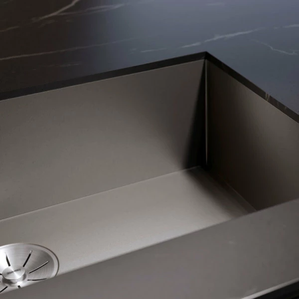 Dark Steel er en materiale innovasjon fra Blanco, som gir et stilig, mørkt og varmt uttrykk med en fin, velouraktig tekstur.