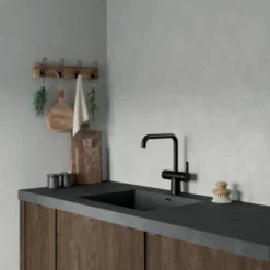 Touchless armaturet kombinerer design med berøringsfri teknologi og gir deg et kjøkkenarmatur som gir deg firhet til å velge mellom tradisjonell betjening med grepet eller berøringsfritt, noe som ofte kan være praktisk når man står midt i matlagingen og hendene er smørt inn i smuss eller saft fra matvarer.