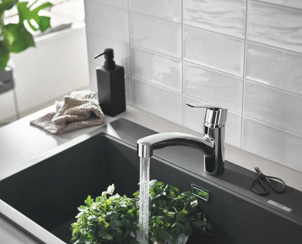 Få mer plass til hverdagen med dette flotte Grohe Start kjøkkenarmatur som er perfekt til hjem der det er masse av aktivitet i kjøkkenet. Armaturet har en uttrekkbar og svingbar tut som gir deg større bevegelighed i kjøkkenet når det skal fylles potter og skylle grønnsaker.