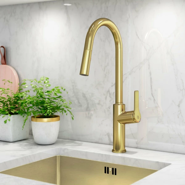Gustavsberg Epic Kjøkkenarmatur, Uttrekkbar Tut, Børstet Messing