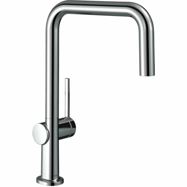 Stilrent og slankt kjøkkenarmatur fra Hansgrohe M54-serien med en fin krom overflate. Med den høye U-tuten er armaturet ekstra velegnet til å fylle store gryter uten problemer. U-tuten gir et unikt designmessig preg på kjøkkenet.