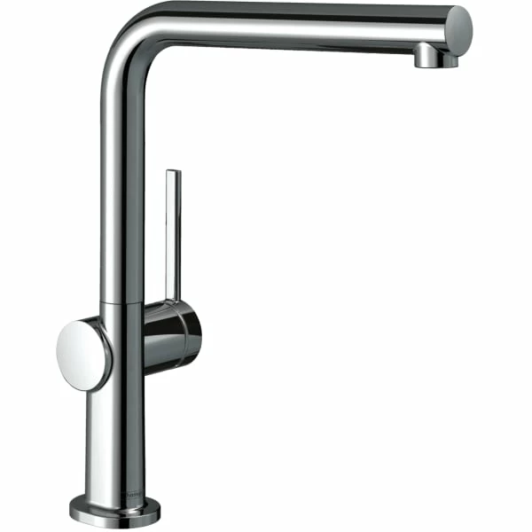 Stilrent og slankt kjøkkenarmatur fra Hansgrohe M54-serien med en fin krom overflate. Med den L-tuten er armaturet ekstra velegnet til å fylle store gryter uten problemer. L-tuten passer med de myke linjene inn i ethvert kjøkken