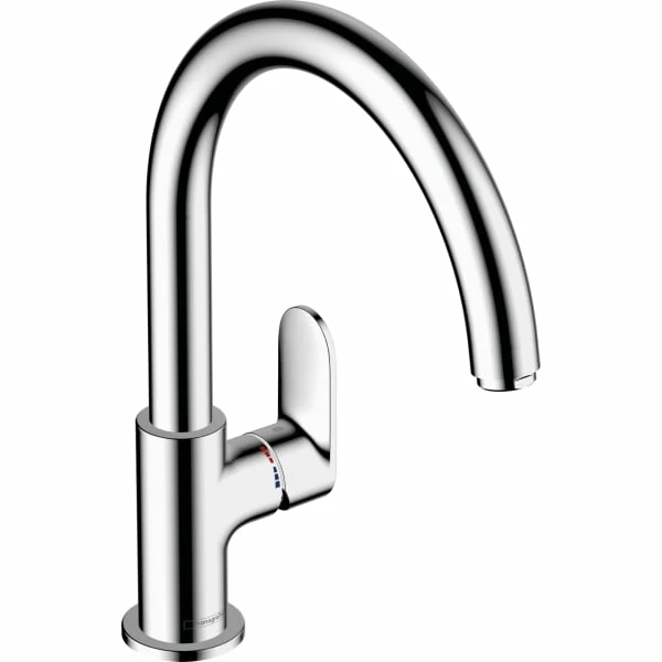 Vernis armaturet er utført i et stilrent design med fokus på det geometriske formspråk, som passer til både det moderne og minimalistiske baderommet. Kjøkkenarmaturens svingradius kan justeres i to trinn (120/360°).