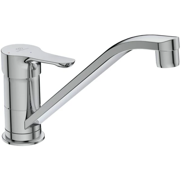 Alpha kjøkkenarmaturet fra Ideal Standard er full med funksjoner. Du får både kaldstart, temperaturbegrensing og vannsparerfunktion. Det glansfulle krom finish og det tidløste design passer med sikkerhet inn i både det moderne og mer tradisjonelle kjøkken.