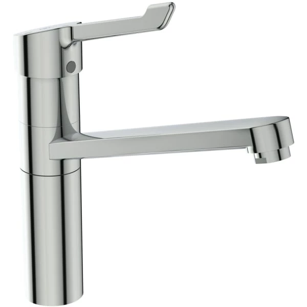 Det høye ettgreps kjøkkenarmaturet fra Ideal Standard fremstår enkelt og veldesignet i flott, blank krom som stilfullt blender inn i ethvert kjøkken.
