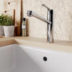Det høye ettgreps kjøkkenarmaturet fra Ideal Standard fremstår enkelt og veldesignet i flott, blank krom som stilfullt blender inn i ethvert kjøkken.