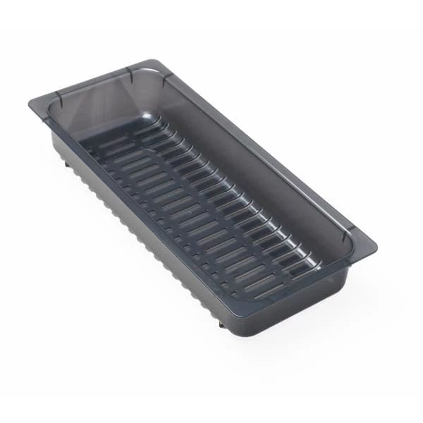 Skyllekurv i sort halvtransparent plast designet for Intra Frame sortimentet. Passer til alle kummer. I den store kummen kan den skubbes sidelengs.