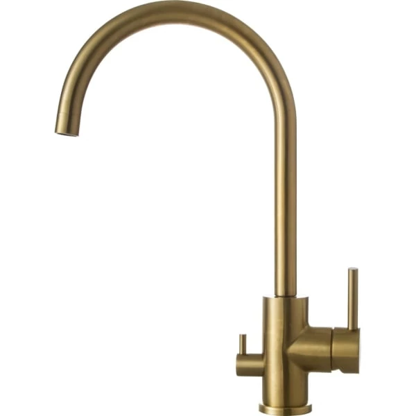 Kjøkkenbatteri i tidløs design. Med høy rund C-tut er det enkelt å fylle gryter og karafler.