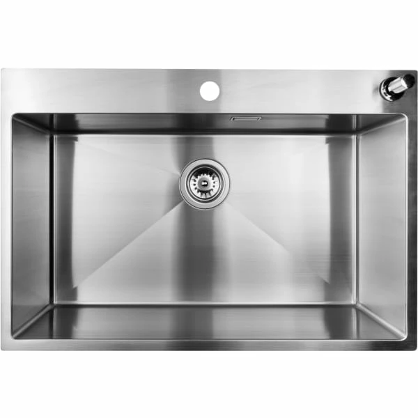 Elegant køkkenvask i rustfritt stål med hull til oppløftsmekanisme til kurvventil og hull til armatur
