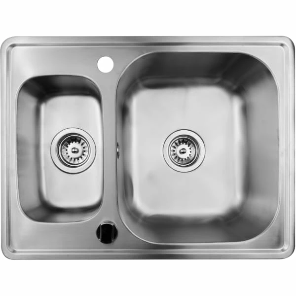 Prisma Odder Dobbel Kjøkkenvask 59,4×49 cm, m/kurvventil, Rustfri Stål